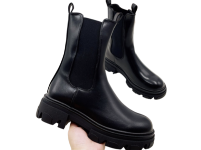 High boots chunky sole zipper - black