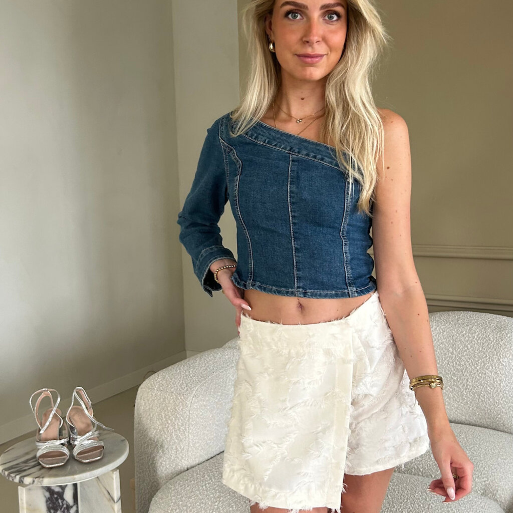 Denim one shoulder longsleeve top