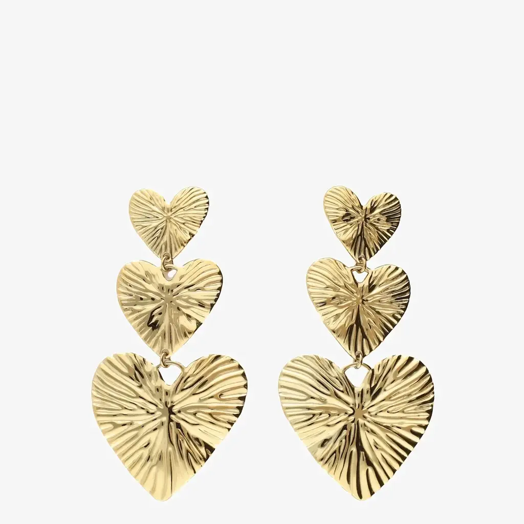 Earring 3 hearts hammered stripe MJ11805 Gold