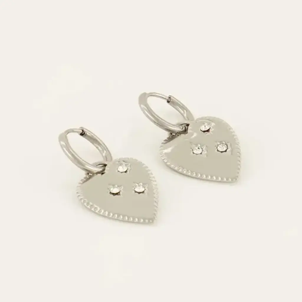 Earring with big heart charm MJ08023 Zilver
