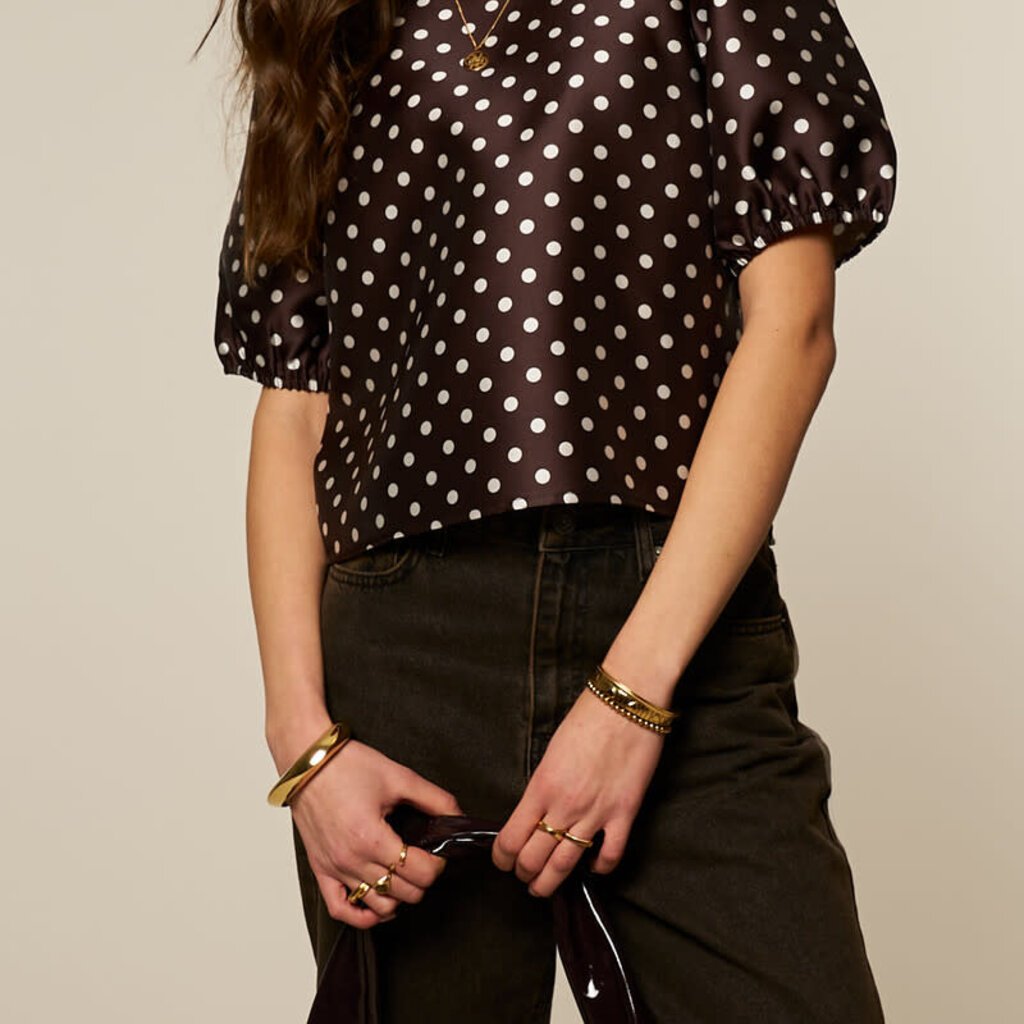 Polkadot top with puff sleeves MJ15402 Brown
