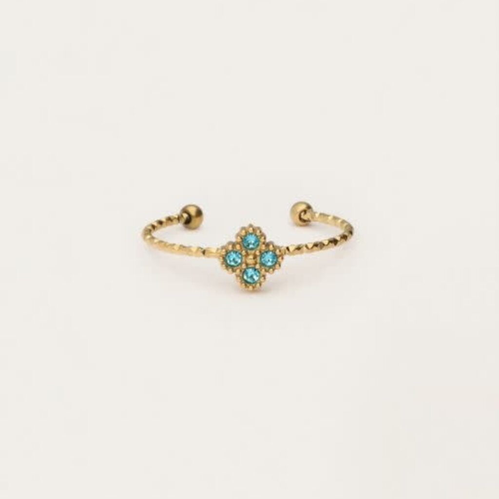 Ring fine clover strass blue MJ12988 Gold