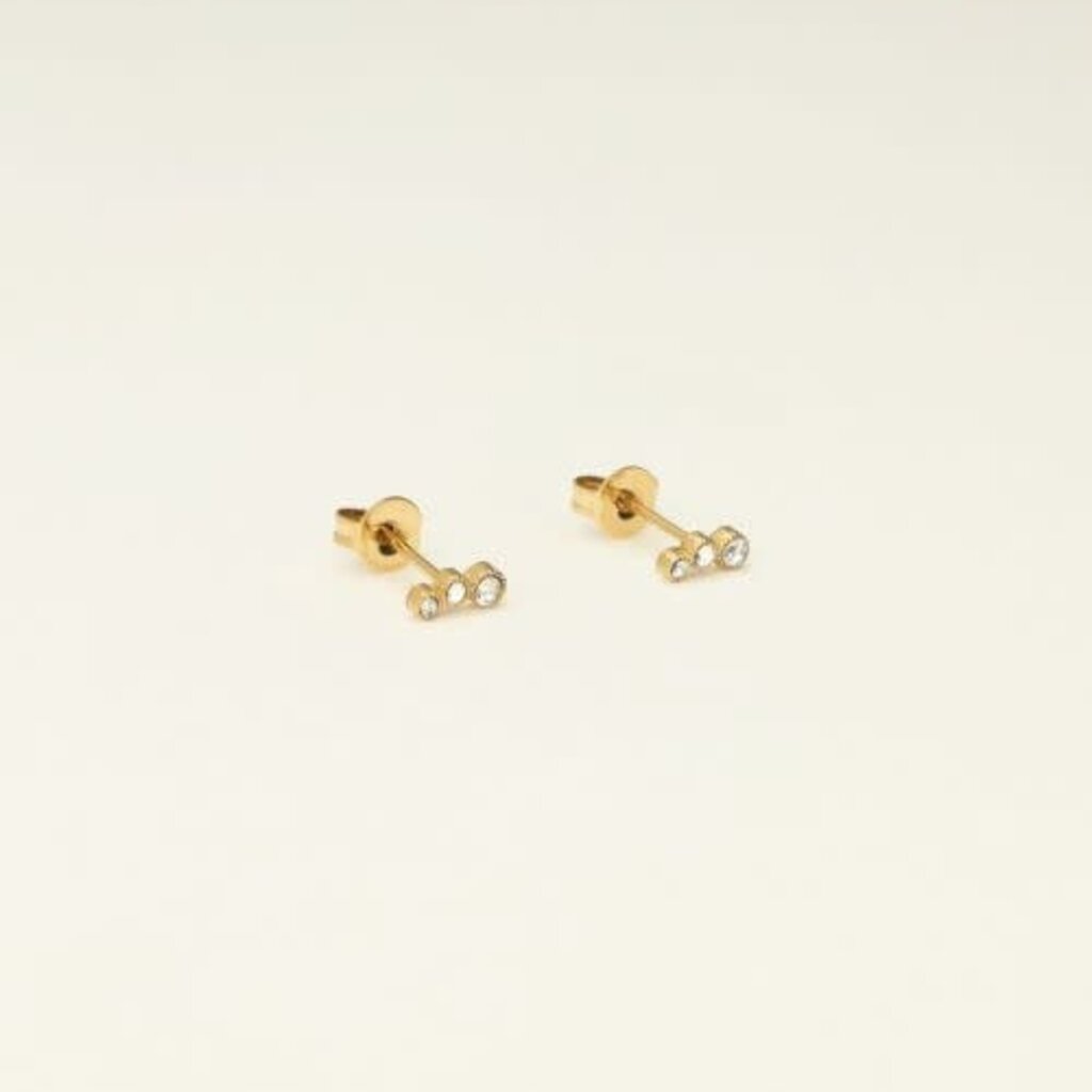 Studs 3 round strass transparant MJ09482 Gold